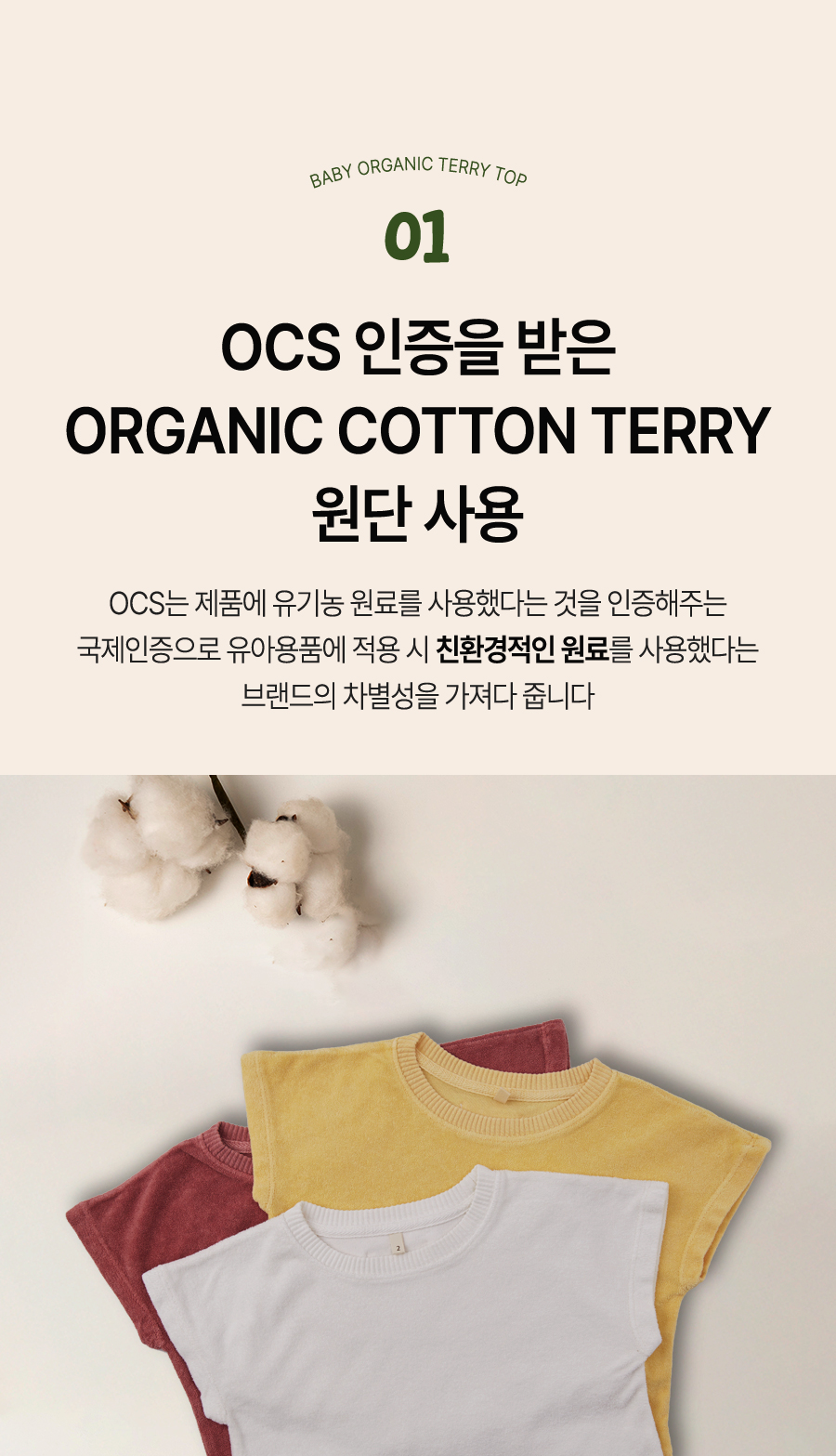 -OCS 인증된 ORGANIC 면 원단 사용